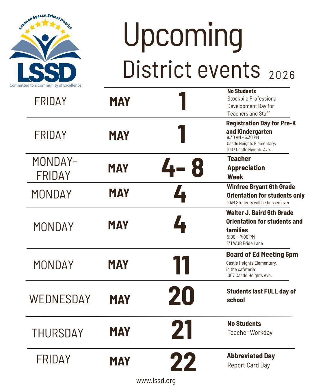 Lebanon Special School District News » Upcoming District Events- May 2026